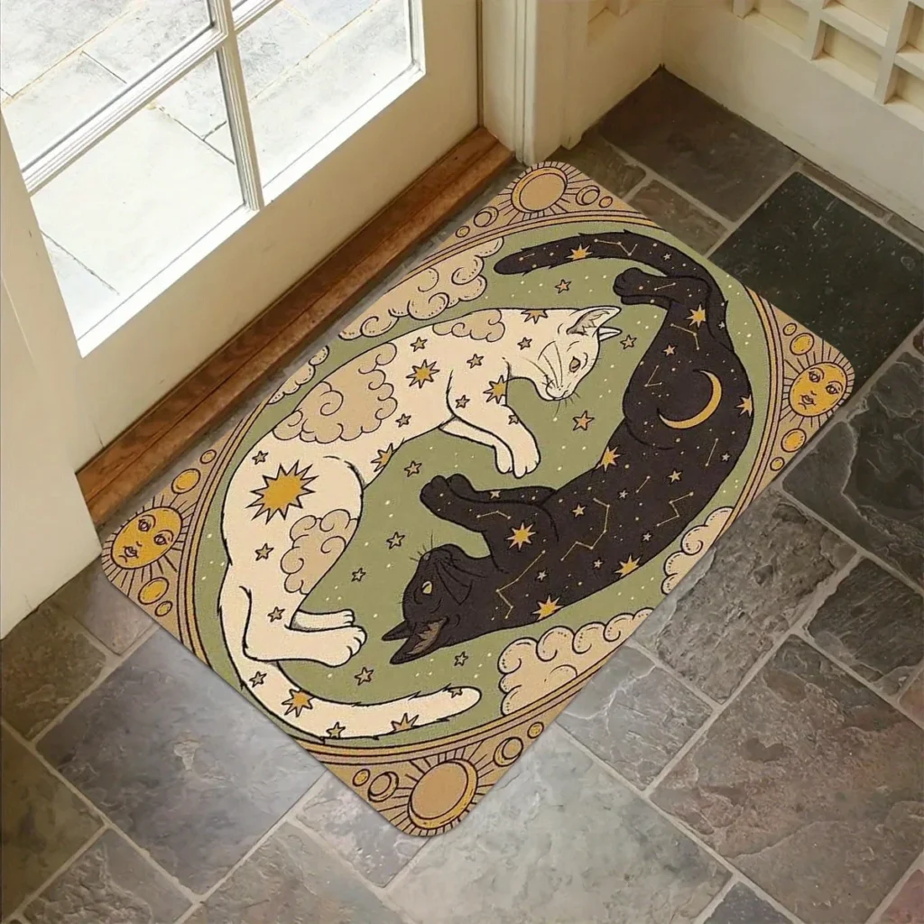 Moon Stardust Vintage Cats Pattern Carpets Bathroom Foot mat Anti-silp Flannel Doormat for Home Decoration Accessories Floor Pad
