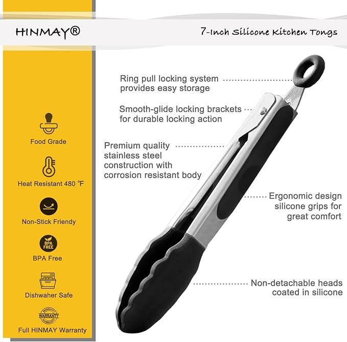 Upgrade your serving game with the HINMAY 7-Inch Small Silicone Mini Serving Tongs (Set of 3) — ideal for appetizers, salads, bars, or buffet settings. Made from food-grade silicone and durable stainless steel, these tongs combine safety and style without scratching nonstick cookware or delicate surfaces.